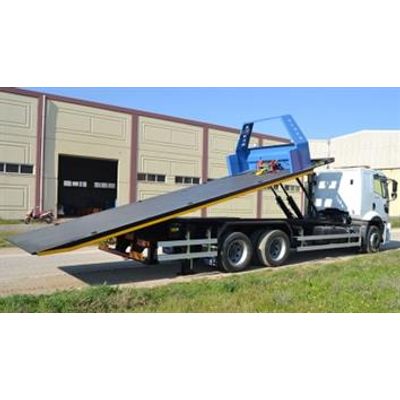 Sliding platforms are used for the transfer of vehicles that have failed, or for the transfer of work machines or wheel less roadside assistance vehicles. By means of the rope drum mounted on the frame, the defective vehicles are slid and pulled closer to the case. In the case of fixed frame platforms, the rear doors can be lowered by the hydraulic system and served as a ramp. From the ramp, work machines are fixed to the platform and their transfers are realized.