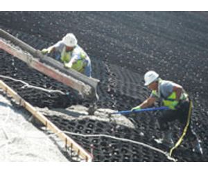 The GEOWEB cellular structure offers redundant “container” support for the concrete, allowing less expensive and easier-to-pour higher slump concrete.