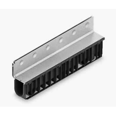With a slotted inlet of 10mm, the paverslot channel offers neat and discreet surface drainage for design-sensitive applications. The system harmoniously blends into the surface appearance with only unobtrusive narrow lines visable. The channel body is manufactured with recycled material and fitted with a 105 mm asymmetrical slot grating available in galvanised or stainless steel. Various channel depths are available, including shallower channels where installation depth is restricted.
