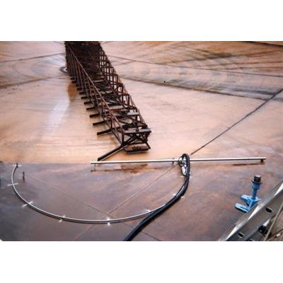 Tubular stainless steel rails guide tractor units through the basin. Interlocking sections are easily transported and assembled.
