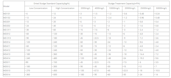 - Throughput of each model is based on sludge cake with 85% water content.
