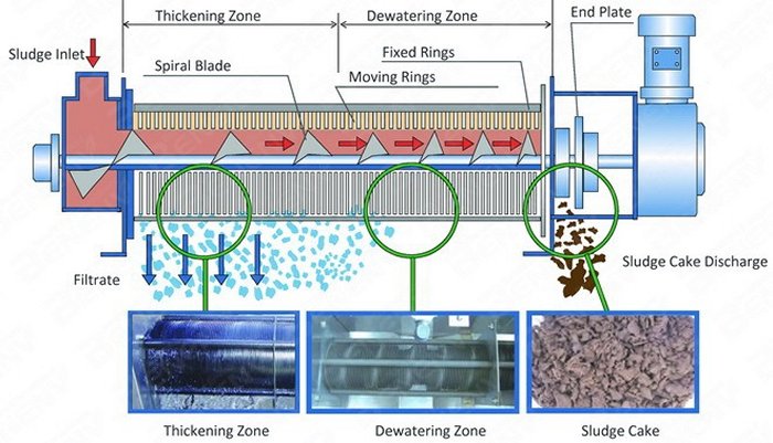 The EEC Multi-Disk Screw Press( Hereinafter referred as MDS ) belongs to the screw press, it’s clog-free and can reduce the sedimentation tank and sludge thickening tank, saving the cost of sewage plant construction. MDS using screw and the moving rings to clean itself as clog-free structure, and controlled by the PLC automatically, it’s a new technology that can replace the traditional filter press like belt press and frame press, the screw speed is very low, so it cost low power and water consumption in contrast to the centrifuge, it is a cutting edge sludge dewatering machine.