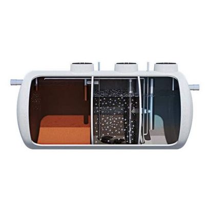 The treatment principle consists of putting into contact the biomass, composed of aerobic bacteria that develop in the presence of oxygen, substances it feeds on (organic material in the water to be treated and which is the source of the pollution) and the air supplied by small compressors.