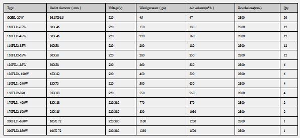 Gaogong - Model FLJ -Small Centrifugal AC Type Blower