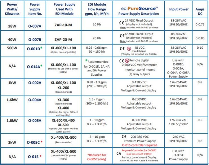 Commercial Power Supplies for Single Electropure brand EDI Modules to 2.3 M³/h (10 GPM).