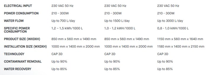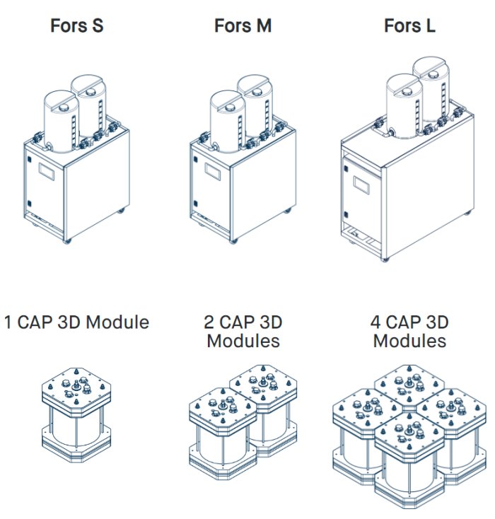 All-in-one small footprint packaged system, for safe & sustainable freshwater production. Using a patented solution, Fors reduces commonly found pollutants without compromising with the water’s naturally rich taste. Fors comes as Fors S, Fors M and Fors L, where Fors S comprises 1 CAP 3D module, Fors M comprises 2 CAP 3D modules and Fors L comprises 4 CAP 3D for multiplied water delivering capacity. Fors comprises a highly configurable electronic design and intelligent software powering the system operations. This makes Fors a smart system, capable of adapting to your water needs with ease. Fors boasts a chemical-free operation, making the system environmentally clean and sustainable.
