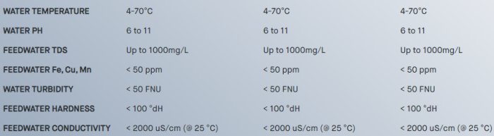 Hard water (high in calcium, magnesium, carbonates) can be treated very effectively through the patented FT-CDI technology to reduce scaling in taps, showers, toilets and water heaters