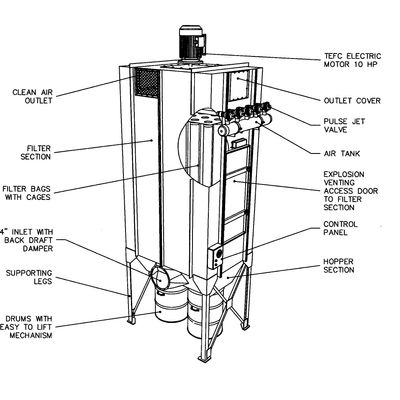 Small package dust collectors 4000 and 7000 CFM for stand alone systems.