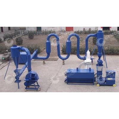 Crusher/hammer mill, conveyor, flat die pellet mill (or small ring die pellet mil), pellet cooler, other auxiliary equipments.