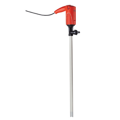 The small sealless drum pump JUNIORFLUX F 314 with fixed commutator motor is especially suitable for pumping comparatively small quantities out of containers such as canisters or drums of up to 200 litres. The small outer tube diameter allows pumping even out of narrow openings.