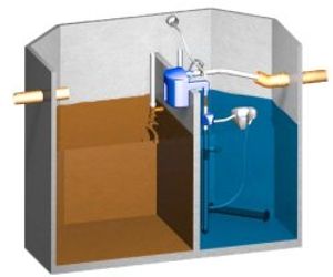 Technical equipment for plastic tank installation in half chamber. For new plants in accordance with DIN EN 12566-3 and for retrofittings of existing tanks. To operate as a biological SBR plant. The system can be installed with little effort in the appropriate tank.