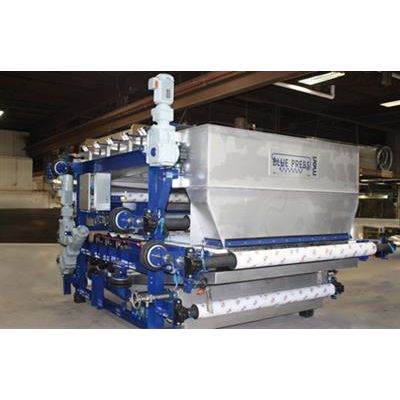 The BLUE PRESS Series is a line of belt presses specially developed for dewateringand thickening of primary and secondary sludge. Their design makes themsuitable for different sludge characteristics and biological sludge content. The gravity area, installed prior to the wedge and pressing area, allows for thetreatment of sludge even at low consistency. The application of pressure rollstogether with the specially designed pressure pattern area achieve a highdryness even for sludge with low structural material content.