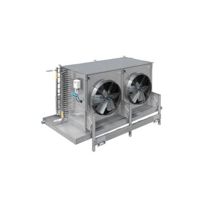 Small to medium size unit coolers for freezers, coolers and docks; suitable for a broad range of temperature requirements. SSTSB Series evaporators feature 3/8 inch diameter stainless steel tube that offers a reduced refrigerant charge compared to similarly sized units with larger diameter tubes. SSTSB Evaporators are offered with Stainless Steel tube/Aluminum fin with a hygienic cabinet design.