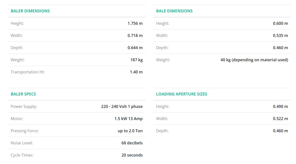 An overview of the baler specifications, dimensions, loading aperture and bale size. Please feel free to contact us to confirm any questions you have on the machines specification or performance