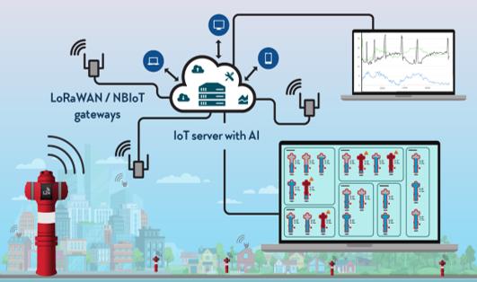 Our solution can be easily integrated into existing measuring locations. The collected data is sent to a dedicated server via wireless LoRaWAN or NBIoT technology, where with the help of our Business and Artificial Intelligence, the user can set the optimal pressure values – even proactively changing – manage customer needs, and discover sudden changes and pressure drops.
