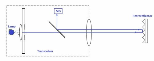 The Concept OPL 100 unit is designed to measure the density of smoke, dust, mist or fog between a given area. The system is low maintenance, double pass, dual beam transmissometer that consists of a transceiver (transmitter / receiver), and a passive retroreflector module. These components are stack mounted which are then interfaced with the control unit. The transceiver produces an electronically modulated and collimated light beam which is projected across the given area to a retroreflector that returns the beam back to the transceiver where the light beam intensity is measured by a measurement detector (MD). This detector will only measure the modulated light and is not affected by the presence of stray or artificial light.