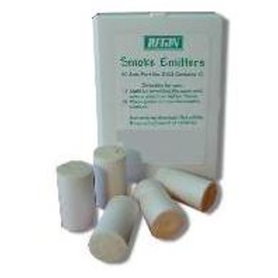 Regin Smoke Emitter Cartridges produce a generous amount of smoke at a constant rate for easy identification and assessment of air flow patterns of HVAC systems and fume hoods. They consist of a small plastic cup into which the smoke generating compound is packed. The compound ignites when touched by a lit match or lighter. No flame is produced, only generous amounts of dense white smoke. The small smoke particle size--0.3 to 2.5 microns--is perfect for testing high efficiency filters and other air purifying equipment.