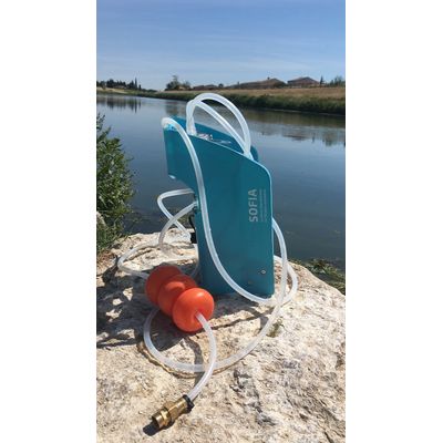 SOFiA is a handy peristaltic pump coupled with a filtration system for fast and standardized sampling of surface water. The device is lightweight, portable, rugged, easy to use, water-resistant and requires minimal maintenance. Coming with a 2.5h-autonomy battery and a carrying case, it is usable for field work in a wide range of environments: rivers, lake, ponds, costal and sea waters, directly in water or from banks, platforms, boats etc.