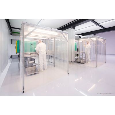 The strip curtain in the "soft wall" version makes it possbile to implement a simple, flexible clean room. Recesses and walls which follow the contours of machines can be achieved without difficulty.