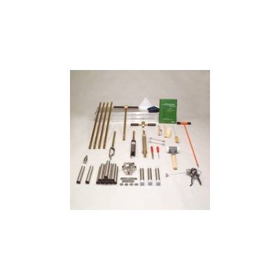 The 0198C1K1: Standard Soils, Compete Set, Soil Coring Kit used in soil sampling for the presence of volatile components. Includes an Edelman auger, stainless steel soil coring apparatus, with a number of sample tubes, filling blocks, and insulation plates. The set is suitable to take undisturbed samples, for sampling depths of 5 meters or more.