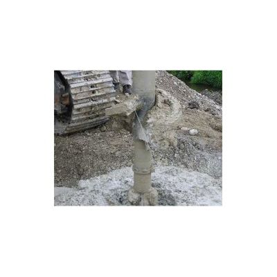 Cement in suspension is pumped through the inner pipe sections of the mixing stem to the mixing head at high pressure, and emerges at outlets in the drill-head, where it is mixed with the surrounding soil by the mixing tool. Thus the soil mixing creates no drill spoil – and both time and cost is saved transporting drill spoil and surplus concrete, which ensures faster and more efficient working.