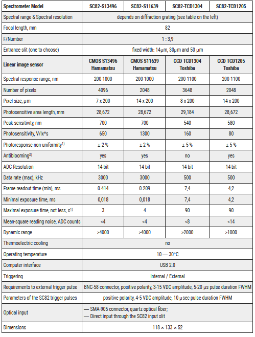 The new compact spectrometer SC82-S13496 utilizes high sensitivity CMOS linear image sensors S13496 and S11639. Highly sensitive (photosensitivity up to 650 V/lx*s), the S13496 image sensor allows using the SC82 spectrometer for low light applications such as Raman scattering, fluorescence, multi-channel spectrophotometry etc. The embedded IMAGING capability features an astigmatism compensator thus further enhancing system sensitivity. Standard Toshiba CCD image sensors TCD1304 and TCD1205 are also available