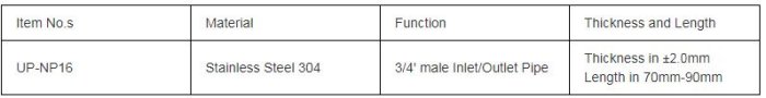 Uniepu - Model UP-NP16 -Solar Water Heater Stainless Steel Pipe Nipples