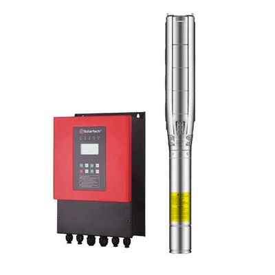 Solartech AC Solar Pump consists of a solar pumping inverter and an AC pump. Solar pumping inverter drives the pump by converting DC power produced by solar array into AC power and adopts patented dynamic VI maximum power tracking (MPPT) algorithm to adjust output frequency according to solar radiation in real time. It has high reliability and an up to 98% conversion efficiency. The maximum water head of Solartech AC Solar Pumps can reach 400m and daily water supply is up 3 to 3000m³.