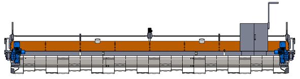 This crane-like frame runs longitudinal through the hall. The immersion depth of the drum in the sludge can be adjusted continuously.