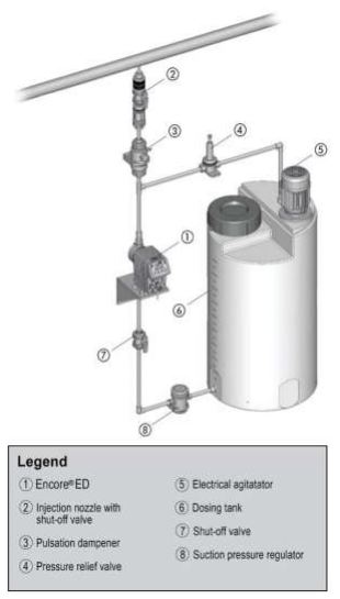 - Suction pressure regulator -to prevent medium flow when the dosing pump is not running or to prevent a vacuum being formed in the event of a pipe failure