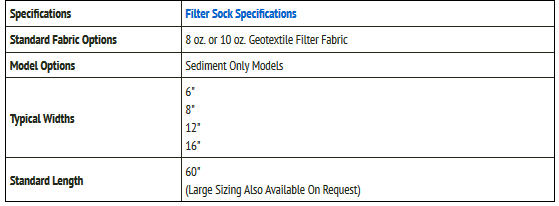 The Taurus Filter Sock, also known as a dewatering sock or pipe sock, is a flexible, low cost way to filter runoff and discharge from a construction site. Designed to easily connect to the end of a pipe or hose, these socks create an easy way for runoff to filter and leave your site. Taurus silt socks are made from an 8 oz. nonwoven filter fabric that provides filtration for discharge items that are six, eight, twelve or sixteen inches (6", 8", 12" or 16") in size.