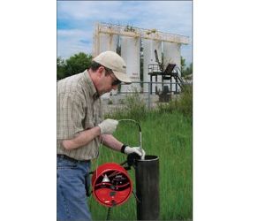 The 122 Interface Meter measures water and product level and thickness, accurately to 1.0 millimeter or 1/200 ft. It measures floating and sinking hydrocarbon, non-aqueous product layers (LNAPL and DNAPL), using a 16 mm (5/8") diameter pressure-proof probe. The 122 is certified intrinsically safe, and is ATEX certified. Readings are taken from accurate laser marked flat tape up to 300 m (1000 ft). The tape is very easy to clean. The 122 is rugged and simple-to-use.