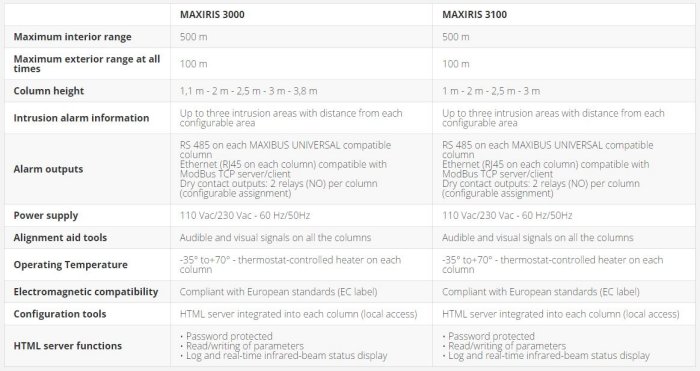 The MAXIRIS infrared barriers offer the highest level of performance of SORHEA products. In fact, for long perimeters (above 1 km), the MAXIRIS columns can be directly connected to a TCP/IP network or in RS485 bus via the MAXIBUS UNIVERSAL Hub.