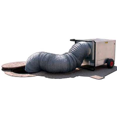 Gas exhauster, designed to remove gases and bad smells from inspection wells and collectors in the presence of potentially explosive airstreams. It is manufactured according to customer requirements, with explosion-proof motor and anti-spark fan with copper ears. It’s very frequent for workers to face bad smells when entering wells, collectors or any confined spaces in general, although a more serious issue is that they are also often exposed to odourless, harmful gases, that are not only dangerous because of their inhalation but because they can also be highly explosive (e.g.: methane).