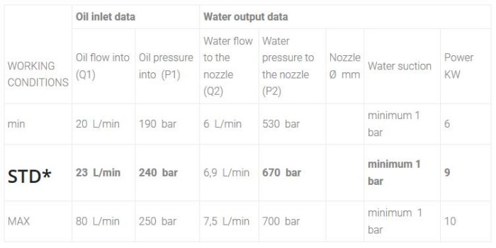 *STD Standard calibration done by Neròn. Different or adjusted calibration done upon customer’s request. The above stated values are subject to variations depending on the oil temperature of the hydraulic system.