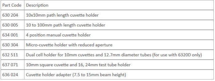 Jenway - Model 63 Series -Spectrophotometer Accessories