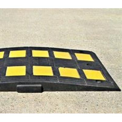 100% Recycled Rubber. Interlocking tongue and groove system to create various widths. Highly reflective embedded Yellow or White Tape. Lightweight and removable. Maintenance free. End caps (solid black) to protect outer sections from wear and tear – 35.5? L x 17.5? W x 2.1? / 0.90 m x 0.44 m x 0.53 m – 0 Thickness (33 lbs / 15 kg). Installation hardware included (lag bolts and shield anchors).