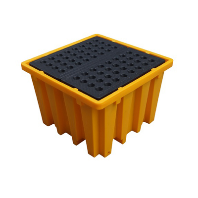 Made from chemical resistant polyethylene. Integral supporting with grids and drain. Low profile height, allows safe and convenient IBC tank handling and dispensing. Dual ends forklift pockets are compatible with most forklifts and pallet trucks. Highly visible and resistant to wide range of industrial liquids. Meets Regulation: EPA 40CFR 264.175, SPCC 40CFR112.7, NPDES 40 CFR 122.20.
