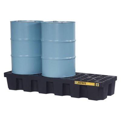 Justrite Spill Pallet EcoPolyBlend 3-Drum Black - 28629 With Drain - The industry`s first spill pallet line made of recycled resin helps support green initiatives.