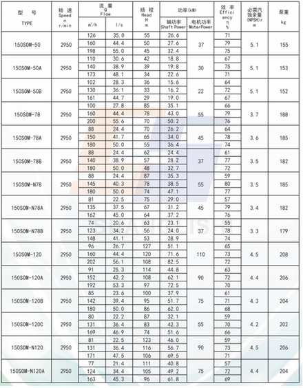 The SOM series products have a total of 615 specifications, the flow rate is 74-23500m3/h, the head is 7-306m, which can meet the needs of various performance parameters.
