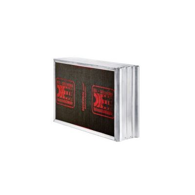 Design: Enclosure from galvanized sheet steel with light-weight profile frame acc. to DIN 24192, available for pressure levels acc. to DIN 24190. The absorber material is covered in the splitter silencer to protect against abrasion. It is non-flammable acc. to DIN4102 and harmless to health (biodegradable or >Cl40) with glass fibre lining