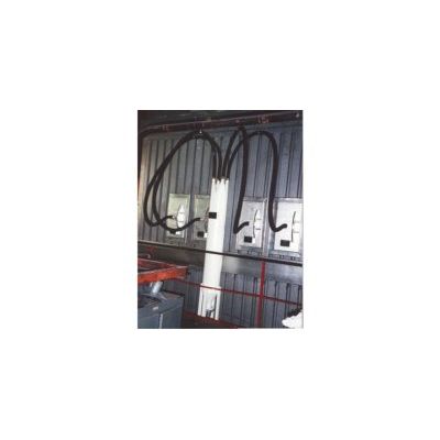 Splitter or manifolder in pneumatic conveying systems are applicated in order to distribute carrier gas and solids very uniformly. 2-8-fold splitters are normally prefered. The following picture shows a four-fold distributor for hydrated lime and air mixture ejecting into a boiler. A trouble free operation of the conveying system is of particular importance. The distributor is a part of the whole plant and aside from the geometric values, it has to be optimized considering the fluid mechanics. It is important to assure that the dominating pressure drop is situated at the end of the conveying line and therefore smaller pressure differences of the conveying line distances can be ignored.