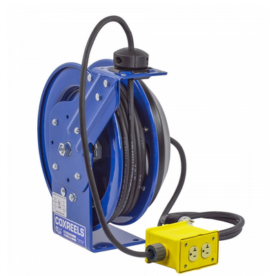 COXREELS PC Series spring driven "Power Cord" reels are heavy duty, industrial grade power sources. They replace tangled extension cords and self-retract to increase safety, productivity and efficiency. Modeled after the P and SH Series, the PC Series are designed for long-lasting, trouble-free performance even under the most demanding conditions.