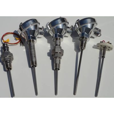 Series 1000 Spring Loaded Tecpak Thermocouples. Spring Loaded, MgO insulated, metal sheathed. Rugged & Vibration Resistant Design. Styles available for use with Thermowells & for Bearing Temperatures. Firm sensor tip contact ensures optimum thermal response & high reliability. Stranded, ANSI color coded, Teflon Leads provide flexibility & workability. Easy replacement of Thermocouple Elements. Wide selection of Heads and Extension Hardware. Optional head mounted 4-20 mA Transmitters.