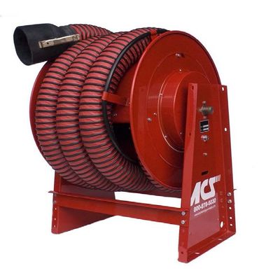 Fume-A-Vent Spring Operated Hose Reel with 4" x 20` Type 3 400 Degrees Fahrenheit Polyester Impregnated Rubber Hose.