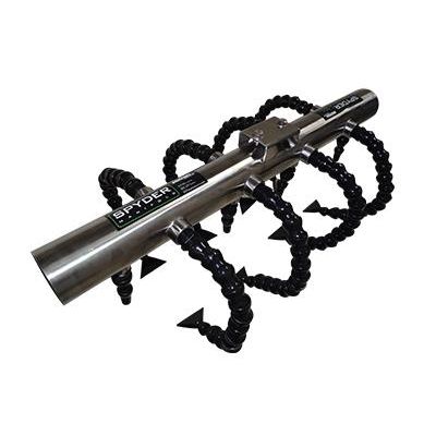 Now available in three different sizes, the Spyder Manifold is the most effective air delivery device for drying the tops, sides, and under the rim of cans, bottles, and jars. Spyder Manifolds combine inline nozzles with "spider-like" arms that flex to any position in order to reach under and around products to accommodate specific drying needs. In addition to this, the Spyder Manifold arms quickly adjust to target products of varying shapes and sizes, for multi-purpose lines, and is also ideal for targeting under the crown and rim of cans.
