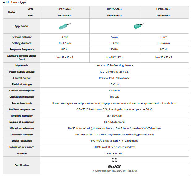 Applied exclusive IC for C-MOS. Wide range of power supply voltage (5-35 V d.c. : DC 3 wire type). Internal noise enhanced circuit. Applied the nonpolar two wire type.