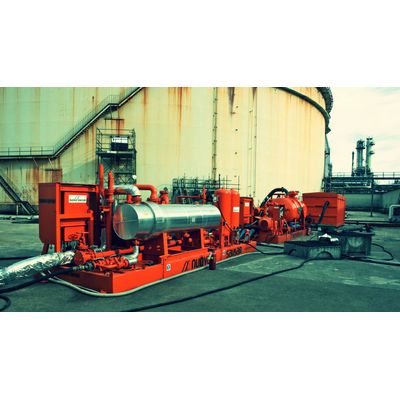 The S.R.S.® Sludge Recovery System crushes the sludge and fluidize the hydrocarbons, by using the same product that has generated the sludge, and recovering up to the 98% of the hydrocarbon contained. It operates in a closed loop, granting the maximum personnel safety and environment protection. Sludge is crashed by special rotating nozzles (called “Jet Washers”) installed on the tank roof, that direct high-pressure jets on all the tank internal surfaces. While liquefying, hydrocarbon gets separated from sludge thanks to 3 combined actions: Mechanical: given by the 5/6 bars of the oil jet from the jet washers; Chemical: given by the lower specific weight; Physical: by heating the oil, viscosity is reduced.