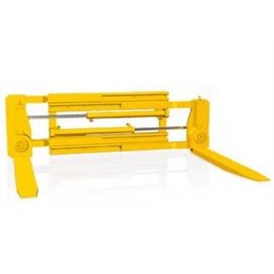 The blade of a pivoting fork clamp can be manually pivoted by 90°. In the 0° position, the attachment can be used as standard forks, in the 90° position, closely stacked goods can be clamped. The 45° position enables prismatic handling and is used for the careful handling of round goods. In the basic position (0°) clamping is not permissible. By combining the attachment with a rotator, it can also be used for emptying bins or turning bales.