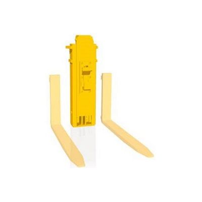 This attachment has been constructed for bulk boxes with frontal bottom discharge. The drop-bottom box dumper is installed on the fork carrier between the existing forks.